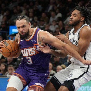 央视网消息:北京时间1月28日,NBA常规赛继续进行,阿伦终场前11.8秒打进关键上篮,太阳主场106-102力克篮网,...