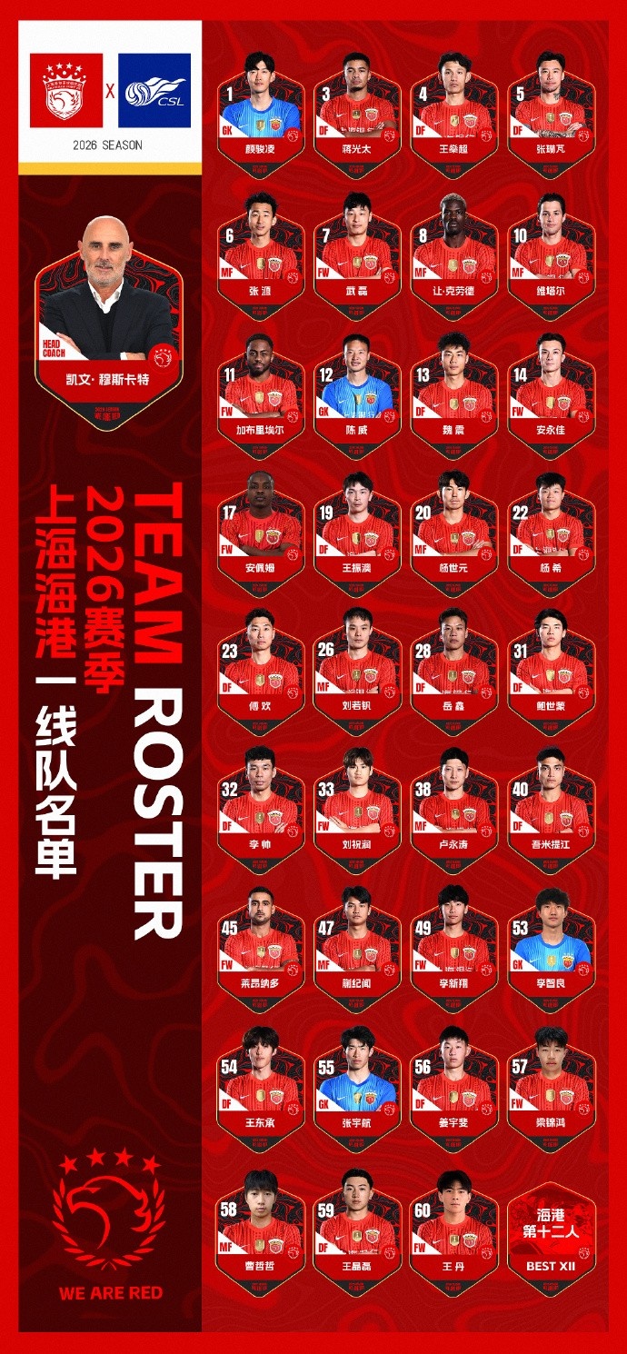 开云APP-2026赛季上海海港一线队名单 并肩战斗